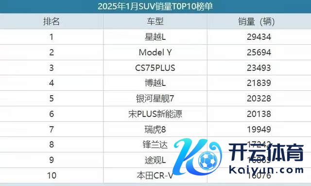 2025年1月,国内SUV商场在春节假期与浪掷不雅望心扉重叠的配景下,呈现出“自主领跑、油电博弈”的显耀特征。尽管乘用车举座销量同比下滑,但SUV细分商场以50%的销量占比展现了较强韧性,近期1月SUV车型的销量数据还是发布,接下来咱们就来望望各款车型的阐扬吧。