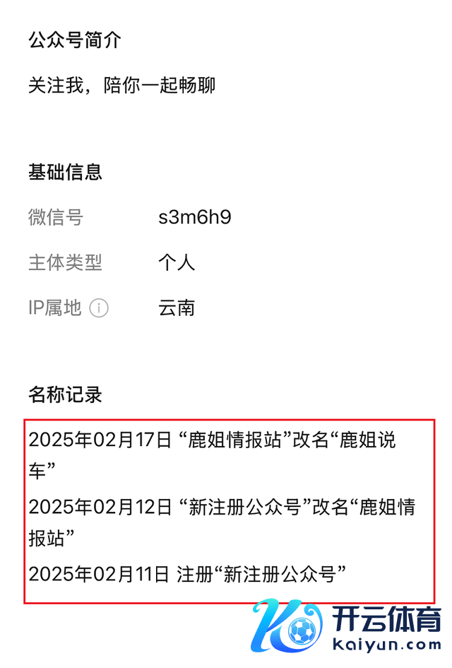 灵通公众号的账号明细,咱们不错发现,《鹿姐说车》账号本年2月11日才注册,2月12日取名为《鹿姐谍报站》,2月17日才负责改名为《鹿姐说车》。
