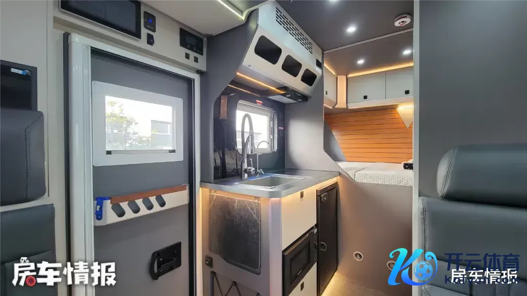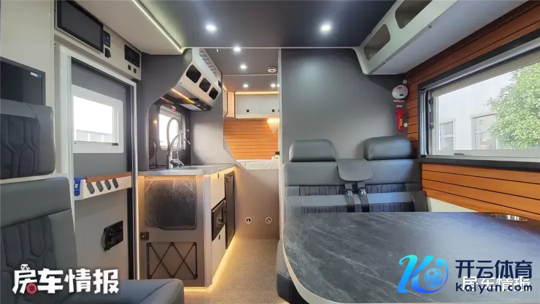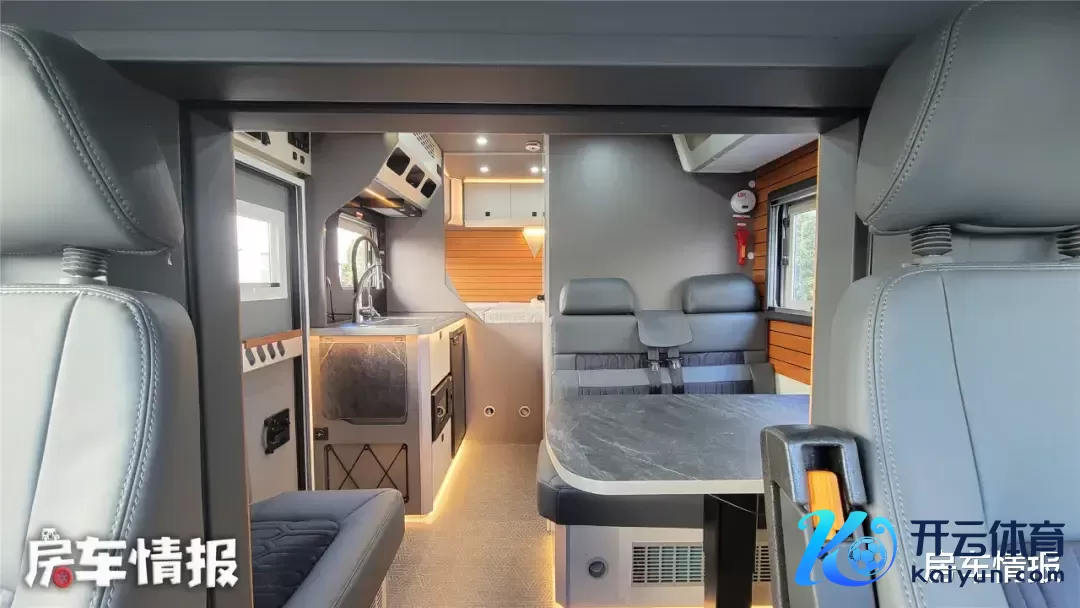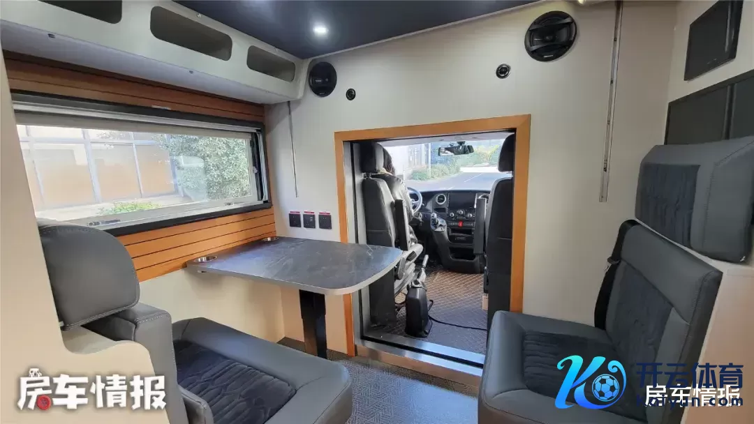 车内的诡计相似让我惊艳。空间诚然不大,但氛围感径直拉满。深灰色的产品板材搭配原木色饰板,轻奢风径直拿合手,高等感十足。前线是会客区,双东谈长官椅加条形沙发,再配上一个升降餐桌,吃饭、聊天,全处置!