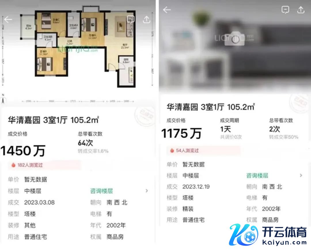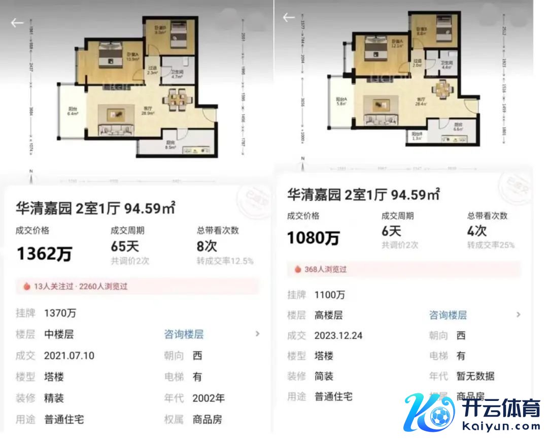 94平的两居室,一样跌了小300万。2021年景交价1362万,2023年年底独一1080万。