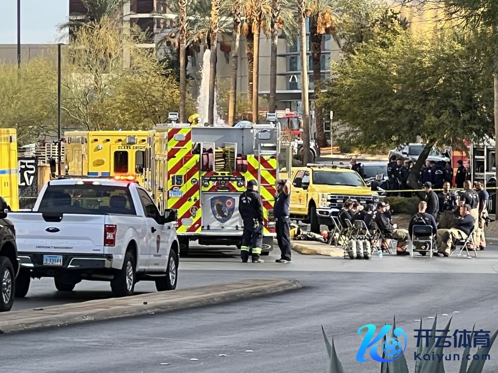 1月1日,在好意思国内华达州拉斯维加斯,济急东谈主员在发生电动汽车爆炸事件的特朗普酒店门前封闭区域待命。新华社记者谭晶晶摄