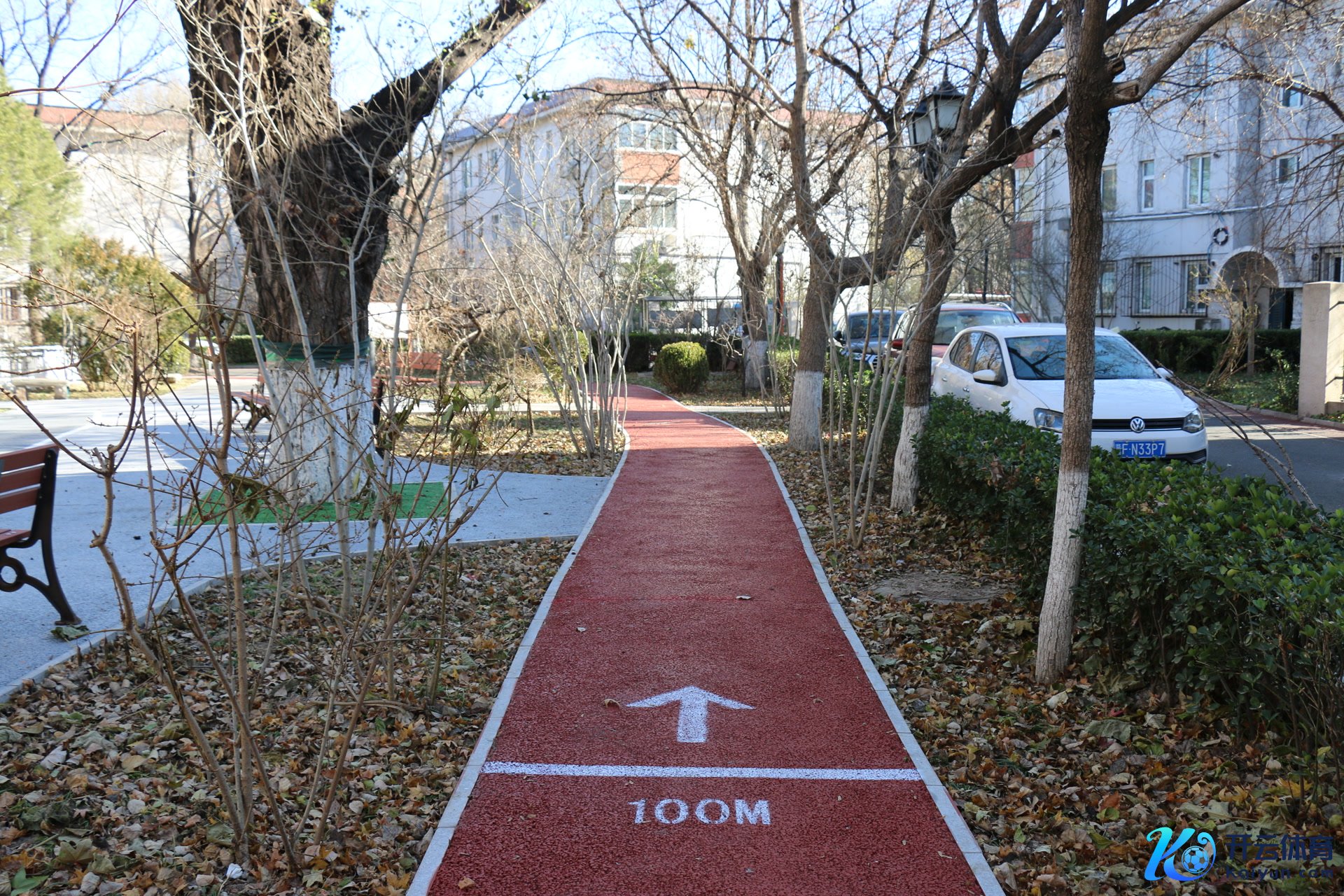 红色沥青环形步说念特地作念了里程记号。