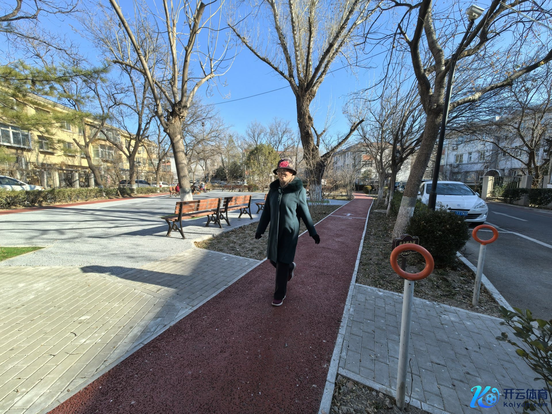 住户遛弯儿自环形扶手旁流程。“早上老东说念主还爱来这儿打太极拳,”李女士绕着红色步说念走了一圈又一圈。她得意地告诉记者,前些日子体检发现血糖有点儿高,“大夫让我饭后走半小时,目下我血糖地方已收复浮浅了。”