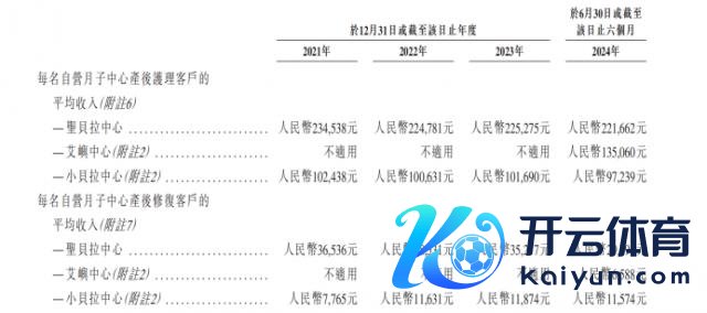 圣贝拉莫得泄露具体的总客单价,但是 2024 年上半年,两大品牌圣贝拉中心和小贝拉中心在产后照顾和产后开发两伟业务的单客收入,均远低于 2021 年数值。