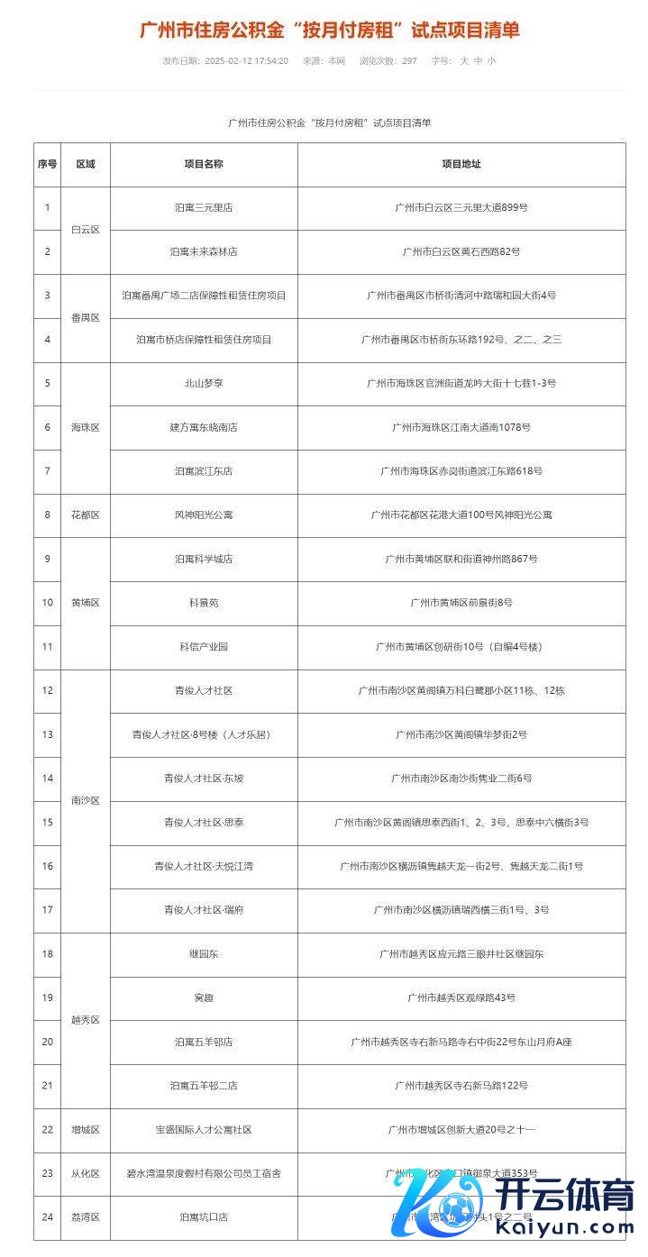 2月12日,广州住房公积金不断中心在官方网站公布试点技俩清单,现在,全市共有24个“按月付房租”技俩,包括:泊寓三元里店、泊寓将来丛林店、泊寓番禺广场二铺保险性租出住房技俩、泊寓市桥铺保险性租出住房技俩、北山梦享、建方寓东晓南店、泊寓滨江东店、风神阳光公寓、泊寓科学城店、科景苑、科信产业园、青俊东说念主才社区、青俊东说念主才社区·8号楼(东说念主才乐居)、青俊东说念主才社区·东坡、青俊东说念主才社区·想泰、青俊东说念主才社区·天悦江湾、青俊东说念主才社区·瑞府、继园东、窝趣、泊寓五羊邨店、泊寓五羊邨二店、宝盛海外东说念主才公寓社区、碧水湾温泉度假村有限公司职工寝室、泊寓坑口店。