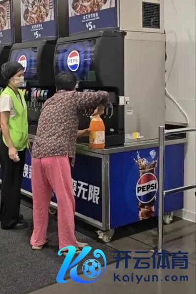 视频中,又名中年女性在门店冻饮免费续杯处事的自助饮料机前,用大容量饮料瓶装满饮料,有责任主谈主员在一旁劝戒,但莫得恶果。