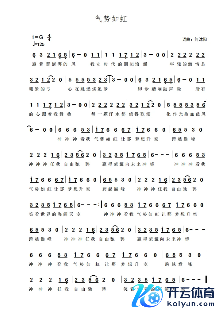 《威望如虹》的创作容身全运会初次由粤港澳三地经办这一配景,紧扣“体育精神与期间精神会通”的主题。开篇一句“迎着那澎湃的风,我当场代的潮起浪涌”,融汇当然盛景和期间征象,寓意体育健儿的奋进姿态。“年青的样貌是绷紧的弓”、“热血破风”等歌词,进一步强化贯通健儿蓄势待发、拼搏跨越的群像;而“统统的心随着我摆动”,则升华至全民参与、齐心筑梦的情谊维度。
