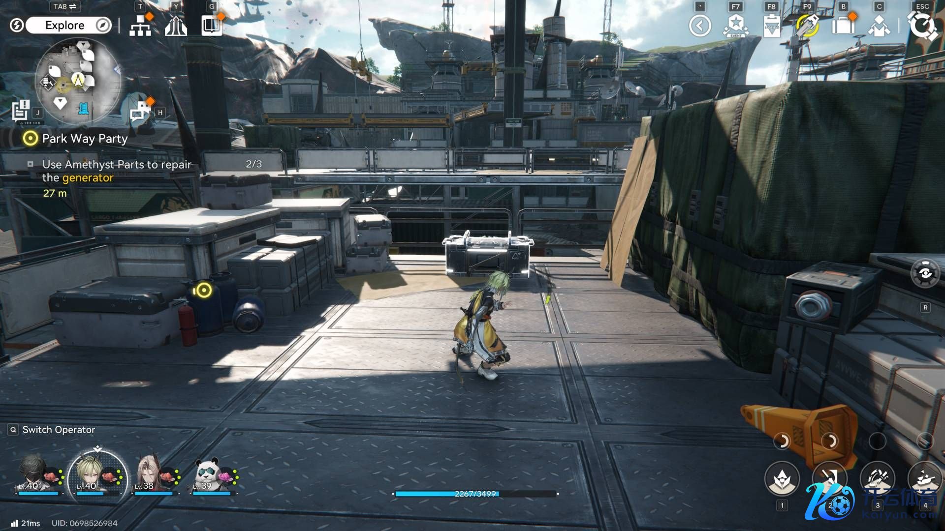 宝箱位置图片1位于干涉园区后的右侧,在源石科学展览安装后头。