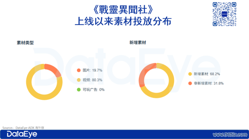 类型散布:素材类型以视频为主,占比高达80.26%,图片素材占比19.74%,而可玩告白占比为0%。这标明视频素材在告白投放中占据主导地位。