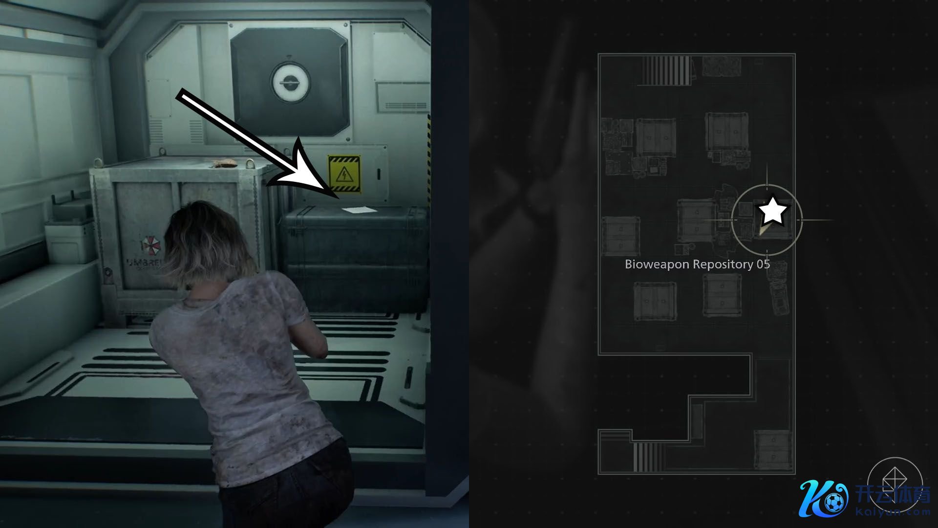 要找到监控领域室的密码,你必须前去位于楼梯下方的05号生物火器仓库(Bioweapon Repository 05)。在该区域,查验你的弹药并准备几瓶强酸,因为你不仅要面平等闲僵尸,还要面临舔食者。带有密码的文献(以及一些零件)不错在房间右侧中间排的掀开集装箱内找到。