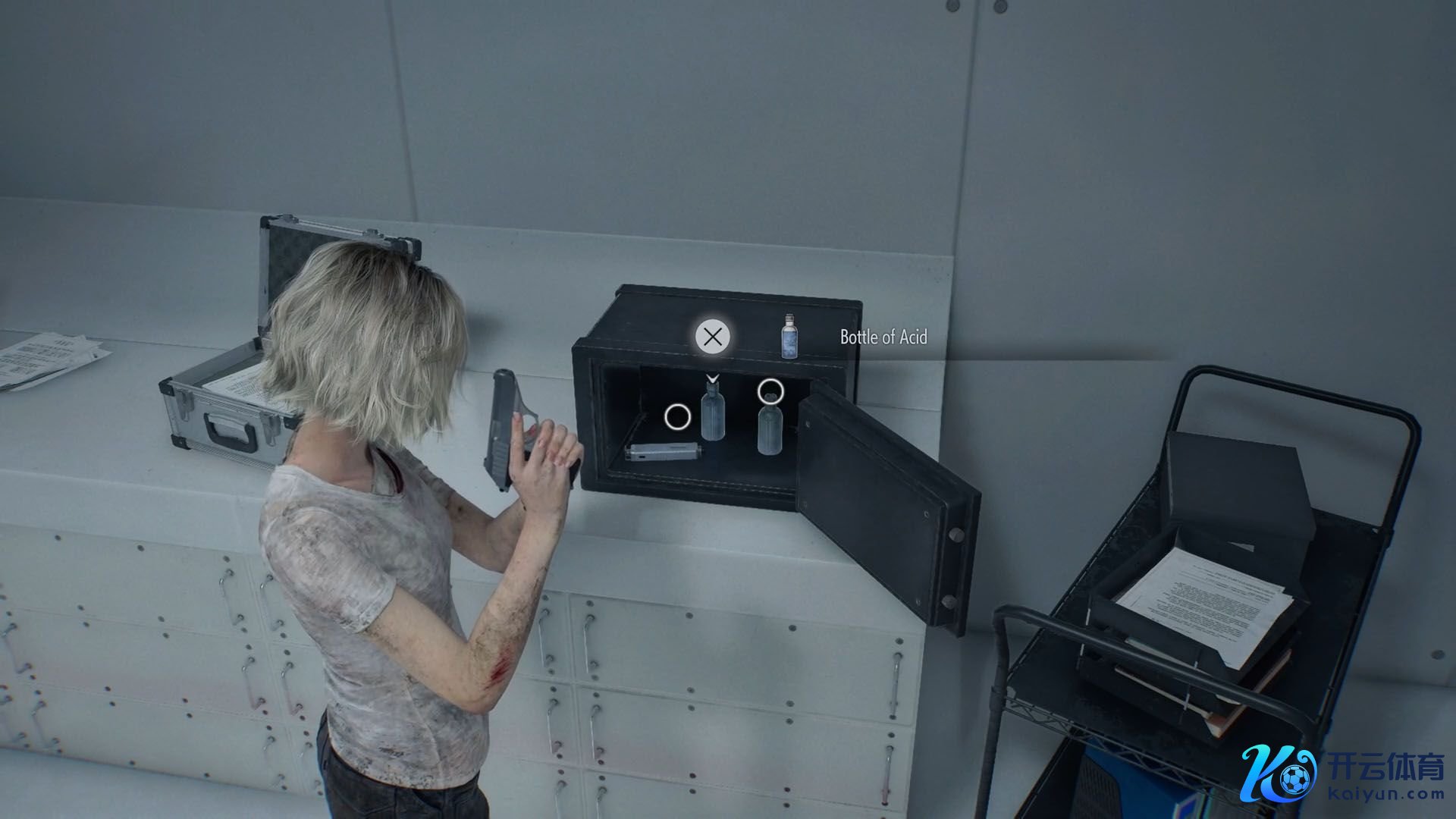 打开这个保障箱会奖励你一瓶强酸、一个空瓶和一个医疗打针器。