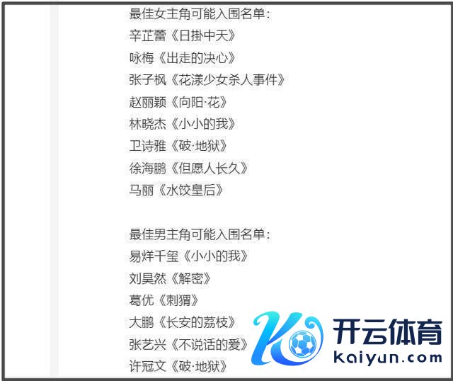 开云体育不合适最好女配奖提名条目-开云「中国」官方网站