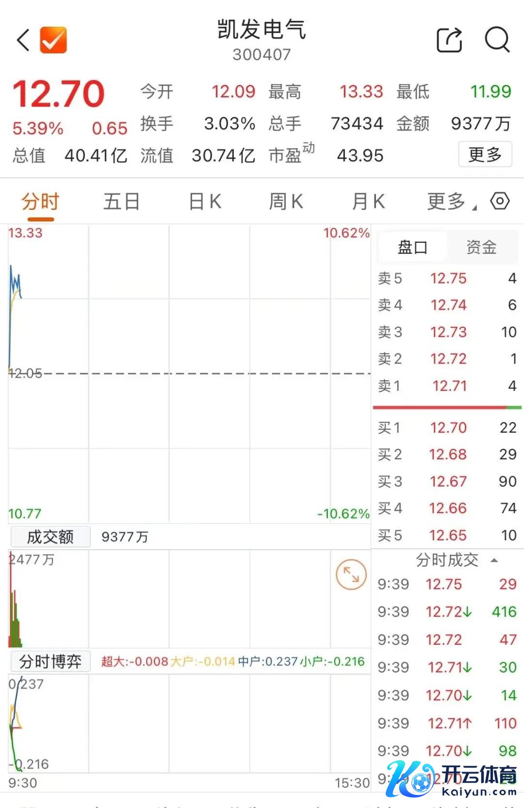 11月26日开盘,凯发电气股价大涨,限制发稿报12.70元/股。