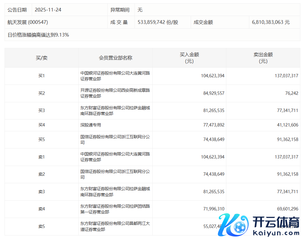 航天发展本日涨10.00% 陈小群席位买入1.05亿元卖出1.37亿元航天发展本日涨10.00% 陈小群席位买入1.05亿元卖出1.37亿元