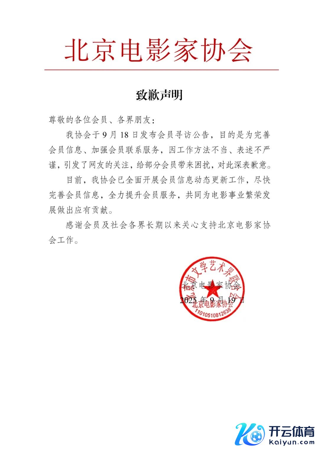 北京电影家协会就“公示失联名单”致歉:存在使命智力失当、表述不严谨的问题北京电影家协会就“公示失联名单”致歉:存在使命智力失当、表述不严谨的问题