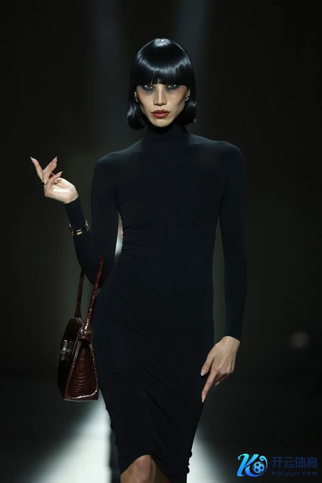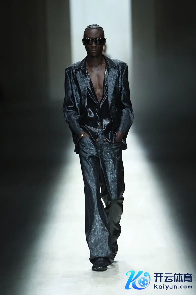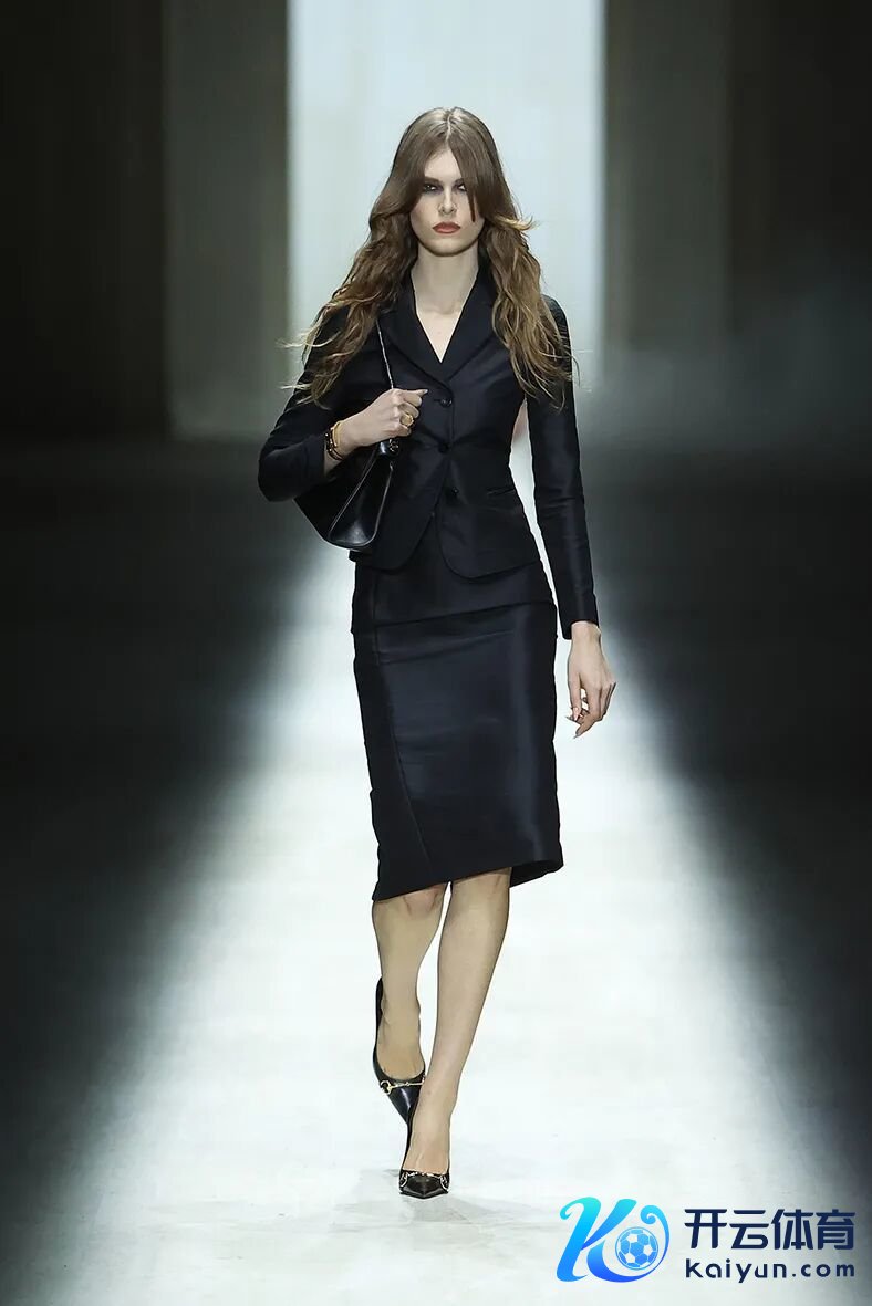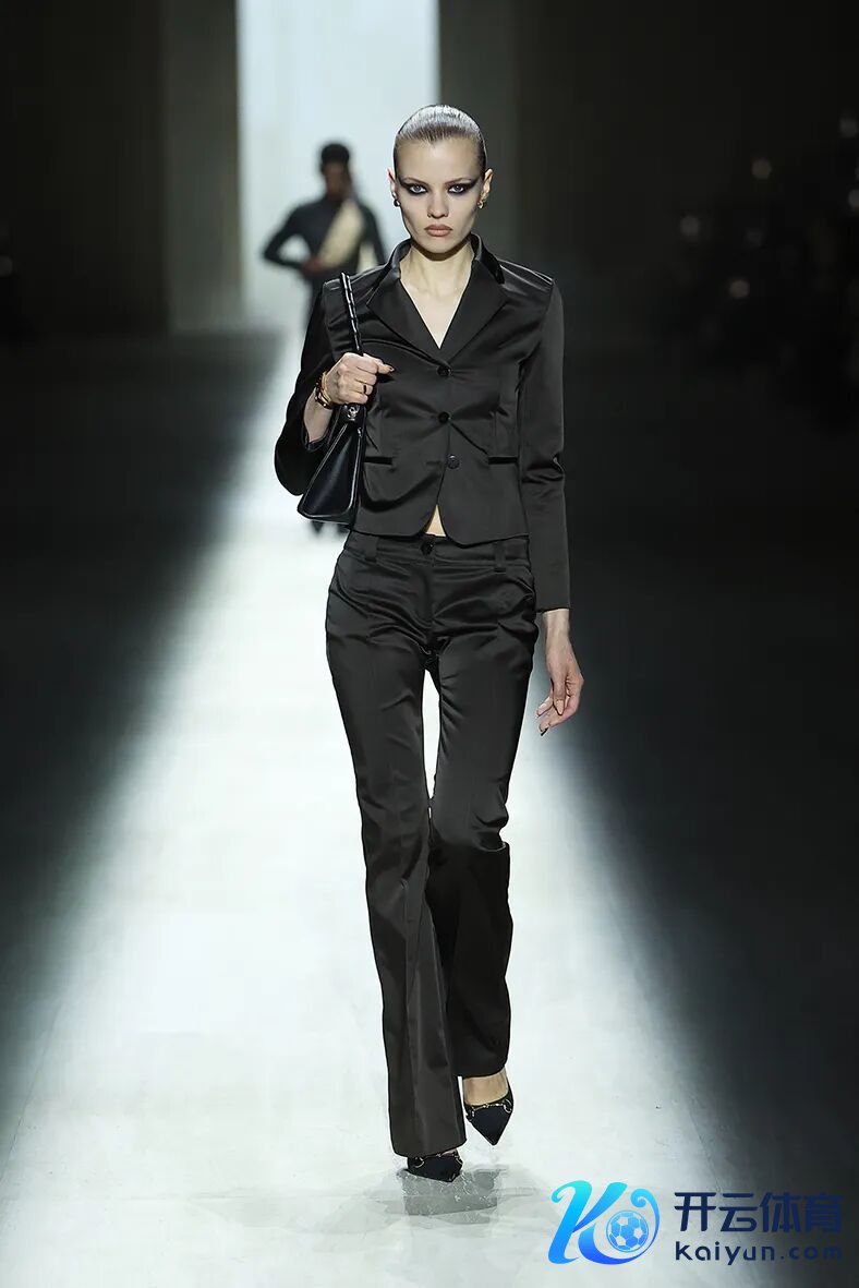 Demna呈现的Primavera系列,把Gucci带回了Tom Ford期间的空想好意思学,其中枢并非单纯的性感。本季以极致无缝白色真诚面料迷你裙开场,传递出一种冷艳疏离的姿态。在概括与剪裁上,上世纪70年代的仇怨丽都与90年代的极简尖锐在此交织和会,通过低腰裤、缎面衬衫、修长西装与深V剪裁强化身体弧线的存在感,使服装成为身体意识的延迟,让衣着者呈现出一种自发而张扬的性感姿态。