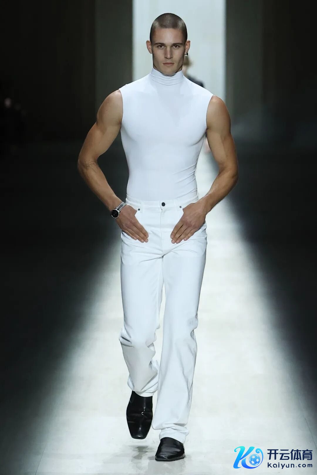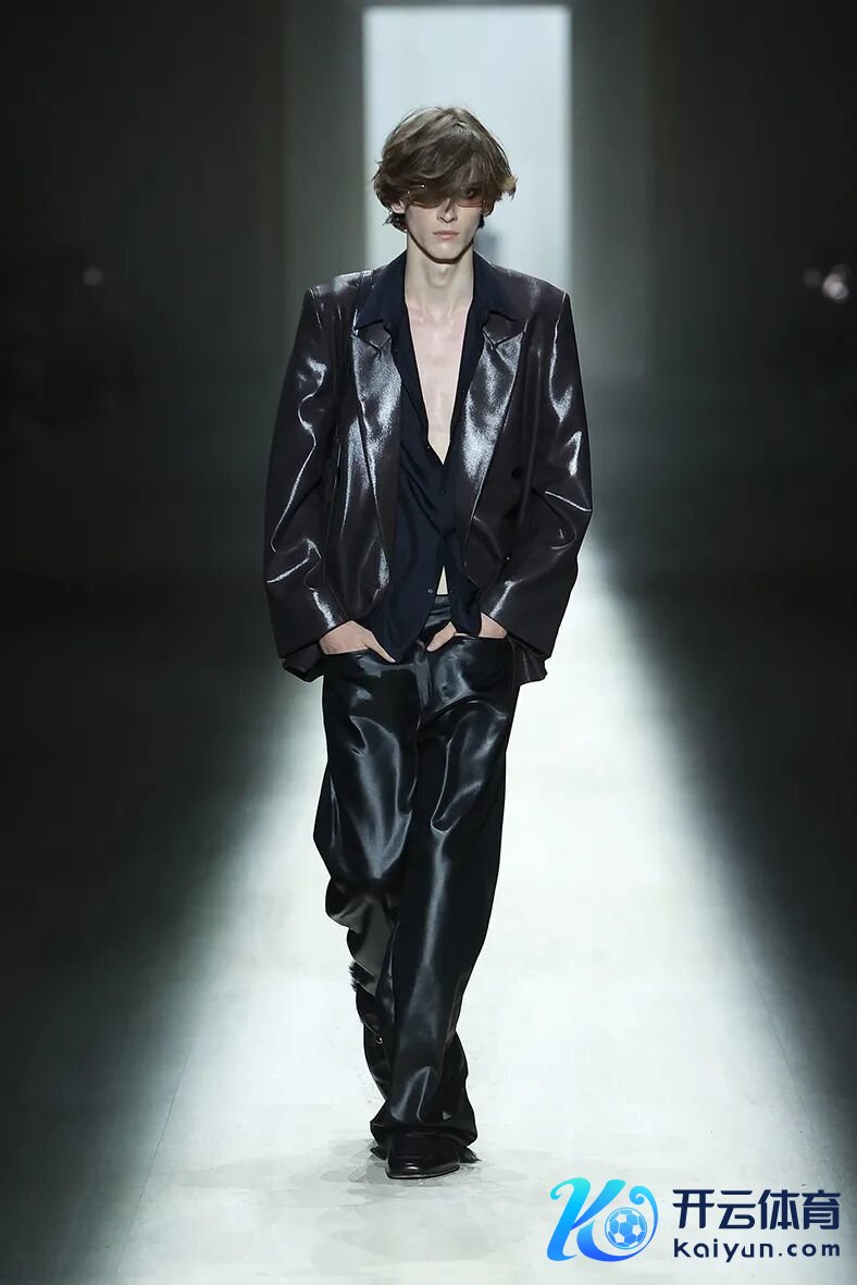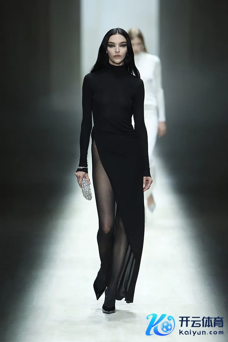 Demna呈现的Primavera系列,把Gucci带回了Tom Ford期间的空想好意思学,其中枢并非单纯的性感。本季以极致无缝白色真诚面料迷你裙开场,传递出一种冷艳疏离的姿态。在概括与剪裁上,上世纪70年代的仇怨丽都与90年代的极简尖锐在此交织和会,通过低腰裤、缎面衬衫、修长西装与深V剪裁强化身体弧线的存在感,使服装成为身体意识的延迟,让衣着者呈现出一种自发而张扬的性感姿态。