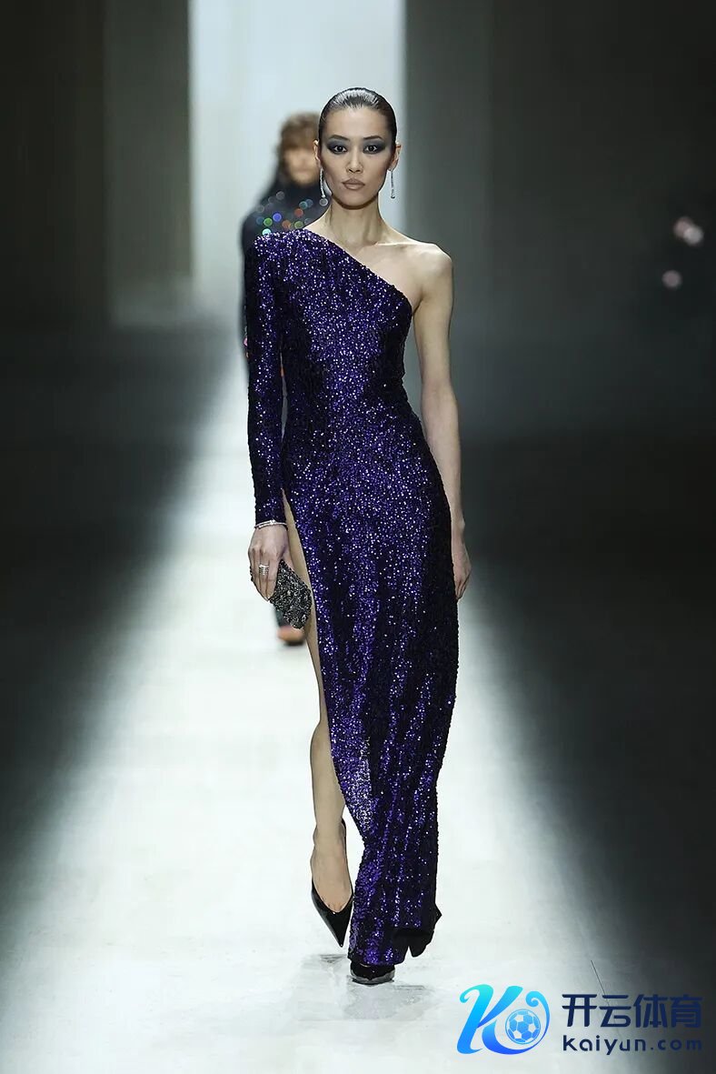 一种属于Gucci的“暗夜好意思学”再度回复:皮革、缎面、金属配饰、深色调与耀眼面料共同组成带多情欲张力的氛围,既丽都又危机,既维抓又时尚,仿佛介于夜生涯与精粹社会之间的朦胧空间。斗胆开衩至腰部的降服与迷你裙互相呼应,而一袭露背降服的后头表现嵌入着10克拉钻石的经典双G logo,既危机、防备,又像夜色中的聚光灯,自由、径直且令东说念主无法暴戾。