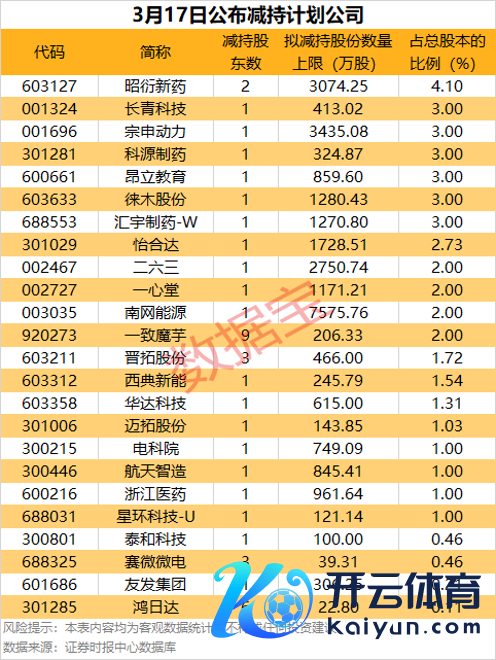 3月17日,24家公司发布了减合手权术,拟减合手比例居前的有昭衍新药、长青科技、宗申能源、科源制药等。
