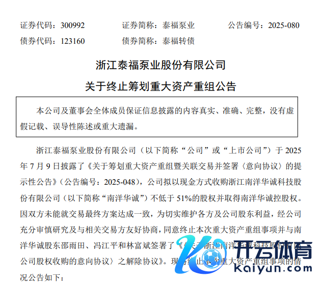 泰福泵业称,这次隔断的要害金钱重组事项尚处于打算阶段,畛域公告泄露之日,往复各方未就具体决议最终达成本体性左券,各方对隔断这次往复无需承担任何负约包袱。隔断这次要害金钱重组不会对公司现存出产贪图算作、财务情景和政策发展形成要害不利影响,不存在毁伤公司及整体股东尤其是中小股东利益的情形。